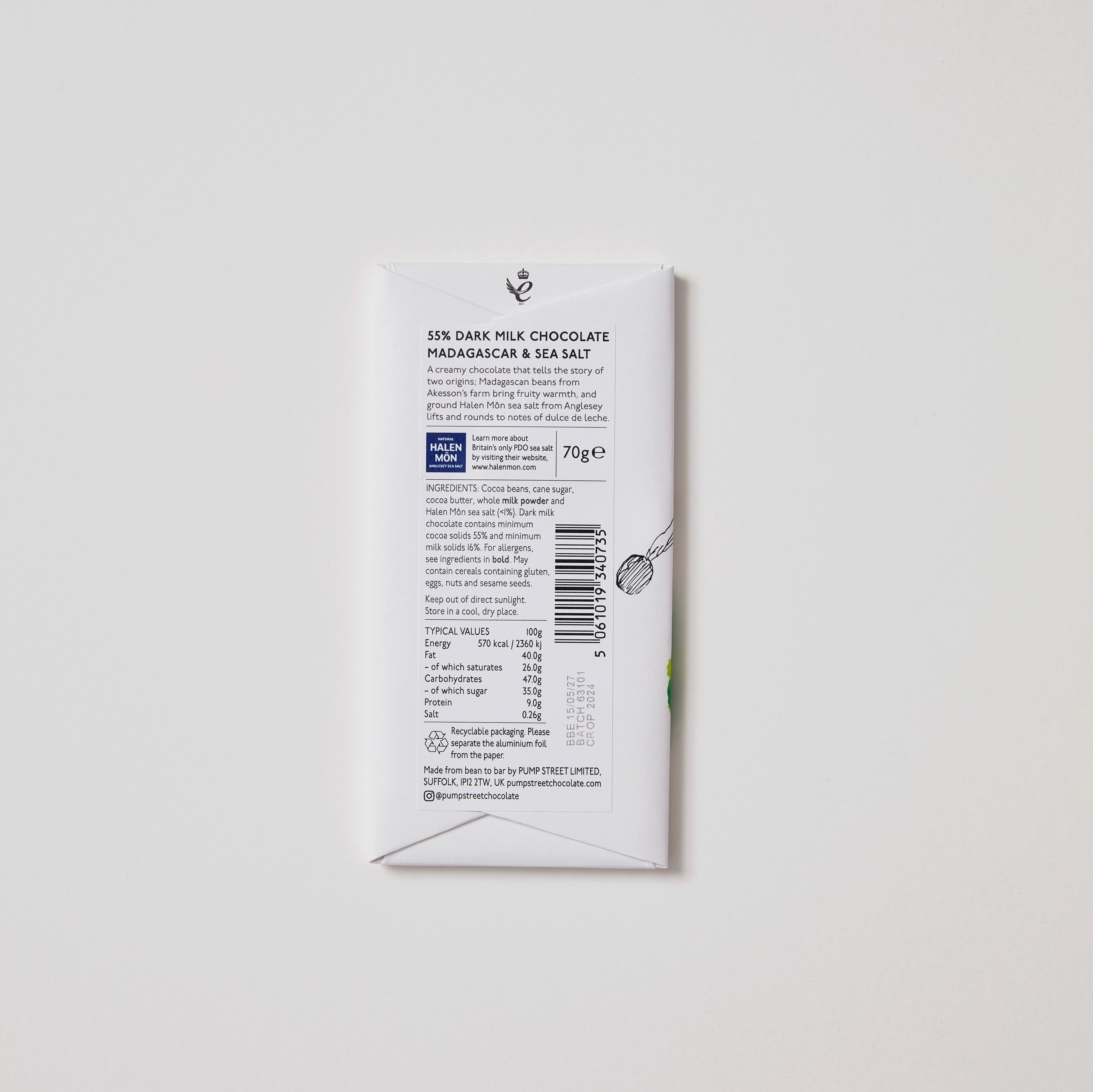The first bar in our Double Origin Series, this bar celebrates the beauty and simplicity of two origins; the Madagascan beans bring a fruity warmth, whilst the sea salt that is ground into the chocolate lifts and rounds to the notes of dulce de leche and milk caramel.